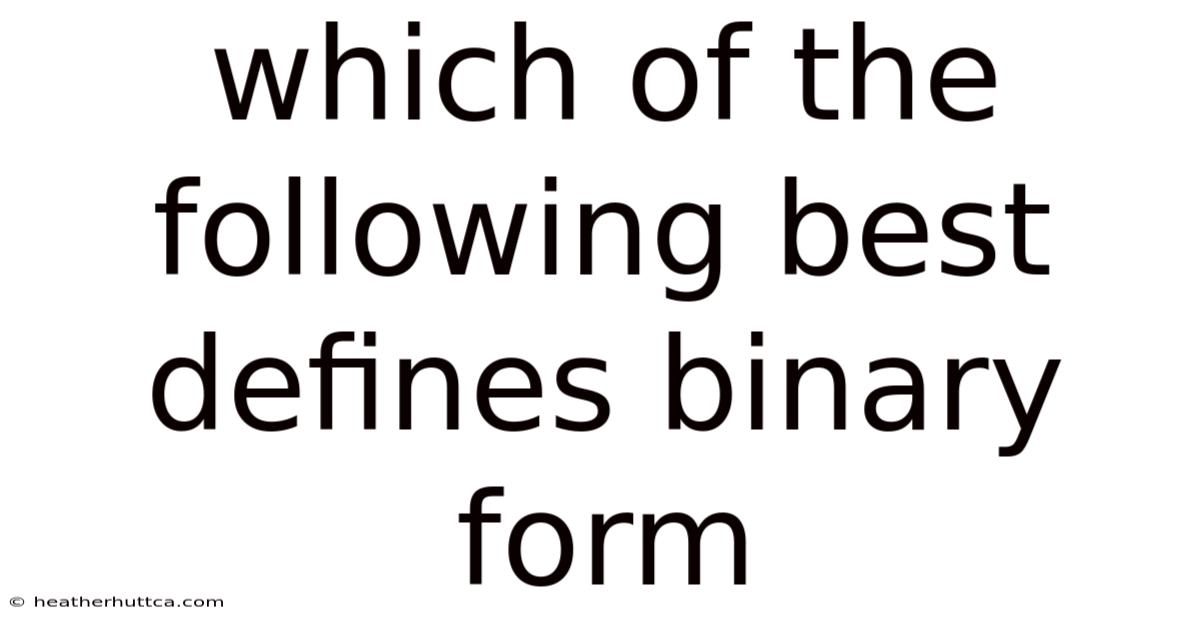 Which of the Following Best Defines Binary Form in music composition and analysis. This fundamental structural concept represents a cornerstone of Western classical music, popular music, and countless other musical traditions worldwide. Understanding binary form allows musicians, students, and listeners to decode the architecture of countless compositions, revealing how musical ideas are organized, developed, and resolved. At its core, binary form describes a musical structure divided into two distinct sections, typically labeled A and B, each with specific characteristics regarding length, key, material, and closure That's the part that actually makes a difference. No workaround needed..