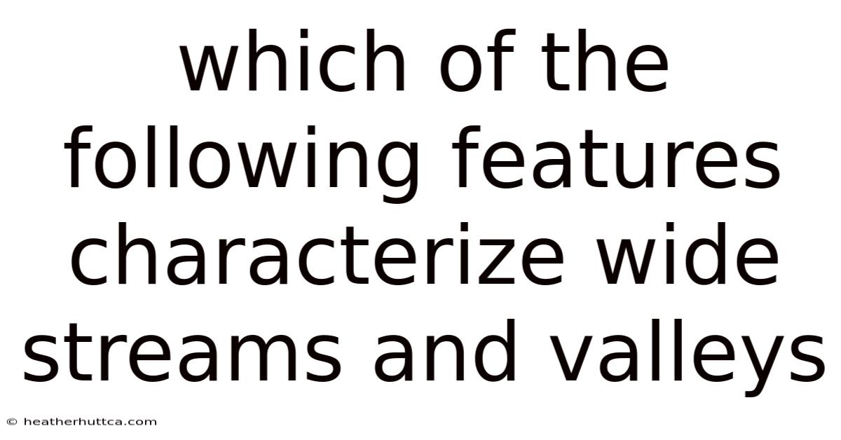 Wide streams and valleys shape landscapes where water moves across broad, gently sloping channels rather than through tight, steep corridors. Wide streams and valleys develop where discharge is high, sediment loads are substantial, and the land allows rivers to wander, pool, and spread. These systems slow water, store flood energy, and build fertile, level ground that supports agriculture, cities, and rich ecosystems. Recognizing which of the following features characterize wide streams and valleys helps explain how rivers behave, how landforms evolve, and why people depend on these environments for safety and resources Which is the point..