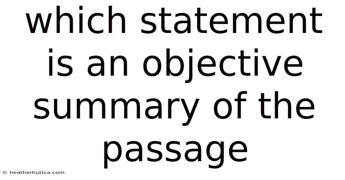 When you read a passage—whether it’s a textbook paragraph, a news article, or a literary excerpt—teachers and examiners often ask you to choose the statement that is an objective summary of the passage. This task may seem simple at first glance, but it actually tests a range of reading‑comprehension skills: recognizing main ideas, distinguishing fact from opinion, and eliminating bias. In this article we will unpack the concept of an objective summary, explore the cognitive steps involved in locating the correct statement, and provide practical strategies you can apply on standardized tests, classroom assignments, or everyday reading That's the part that actually makes a difference..