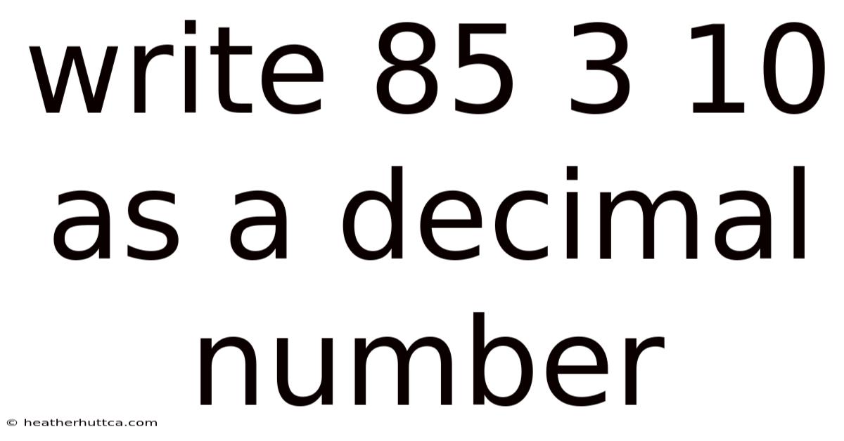 Converting mixed numbers into decimal form is a fundamental skill in mathematics that helps students understand the relationship between fractions and decimals. In this article, we will explore how to write 85 3/10 as a decimal number, explain the steps involved, and discuss why this conversion is important in everyday life Simple as that..