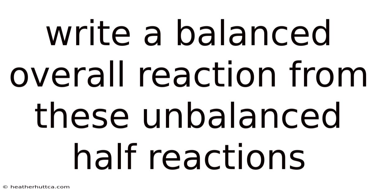 Understanding the balance of chemical reactions is a fundamental skill in chemistry, especially when dealing with complex unbalanced half reactions. When we encounter a reaction that isn’t fully balanced, it can seem frustrating, but breaking it down step by step makes the process clear and manageable. This article will guide you through the essential steps to write a balanced overall reaction, ensuring you grasp the importance of each component and how they fit together in real-world applications It's one of those things that adds up..