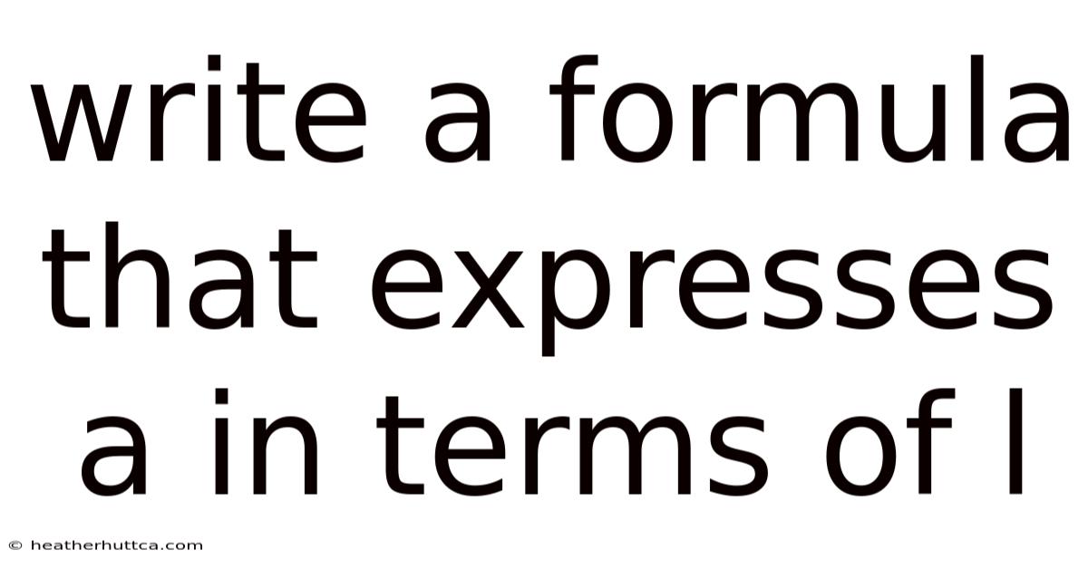 When working with mathematical or scientific problems, expressing one variable in terms of another is a foundational skill. Practically speaking, the task of writing a formula that expresses "a" in terms of "l" requires understanding the relationship between these variables and applying algebraic principles to isolate "a. " This process is critical in fields ranging from physics and engineering to economics and computer science. Below, we explore methods to derive such formulas, provide real-world examples, and explain the underlying concepts And that's really what it comes down to..