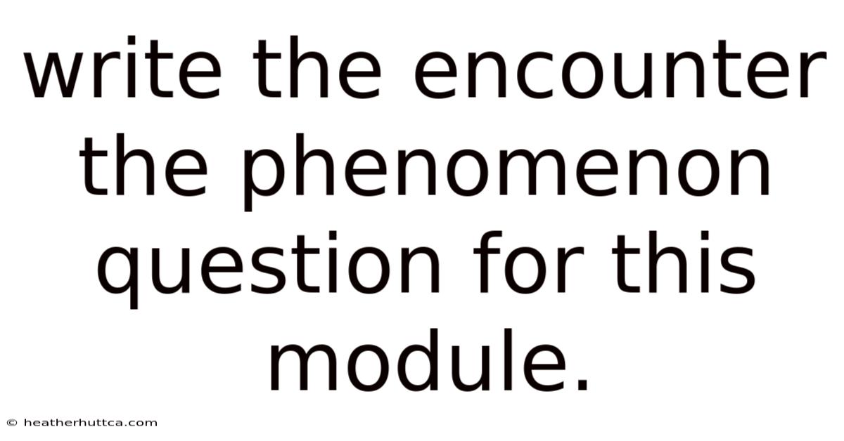 Below is a practical, six‑step framework you can follow each time you need to write the encounter the phenomenon question for this module.