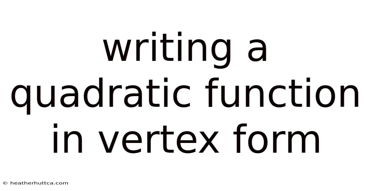 Writing a quadratic function in vertexform is a fundamental skill that unlocks deeper insight into the shape and properties of parabolas. When you rewrite a quadratic equation so that it explicitly shows the vertex — the highest or lowest point of the graph — you gain immediate visual information about the function’s axis of symmetry, direction of opening, and intercepts. This transformation is not only a powerful algebraic tool but also a bridge to real‑world applications such as physics, economics, and engineering, where maximizing or minimizing a quantity is essential. In this article you will learn why vertex form matters, how to convert any standard quadratic into vertex form, and practical tips to avoid common pitfalls. By the end, you will be able to confidently write a quadratic function in vertex form and interpret its graph with ease.